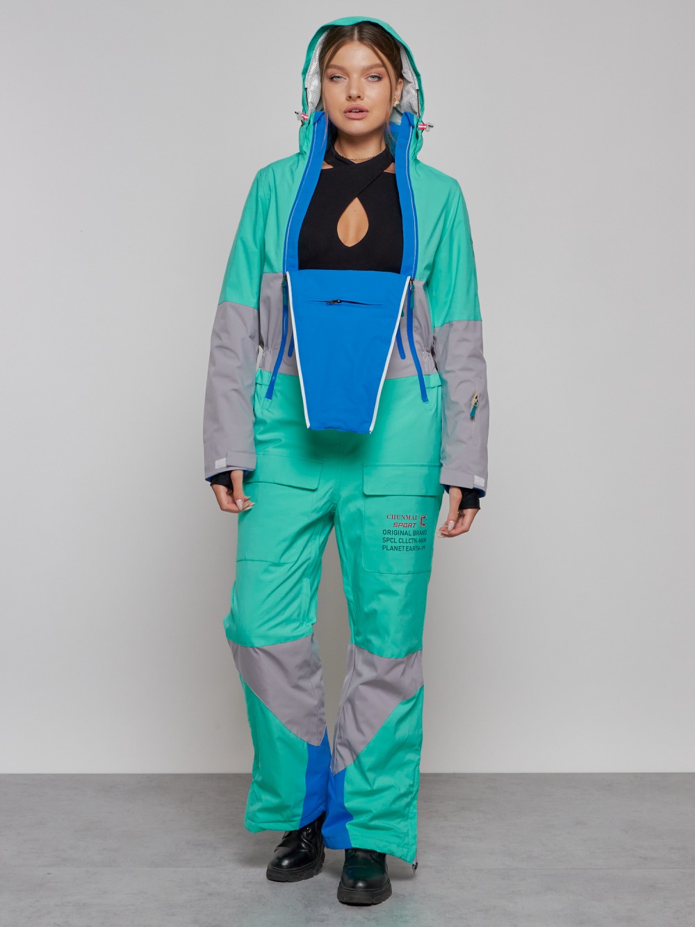 Горнолыжный комбинезон женский зимний УЦЕНКА бирюзового цвета 0949Br