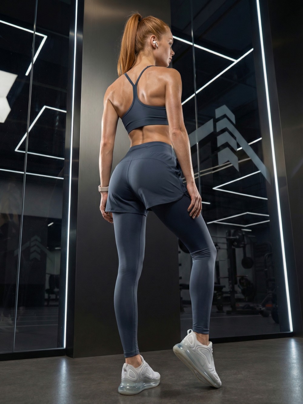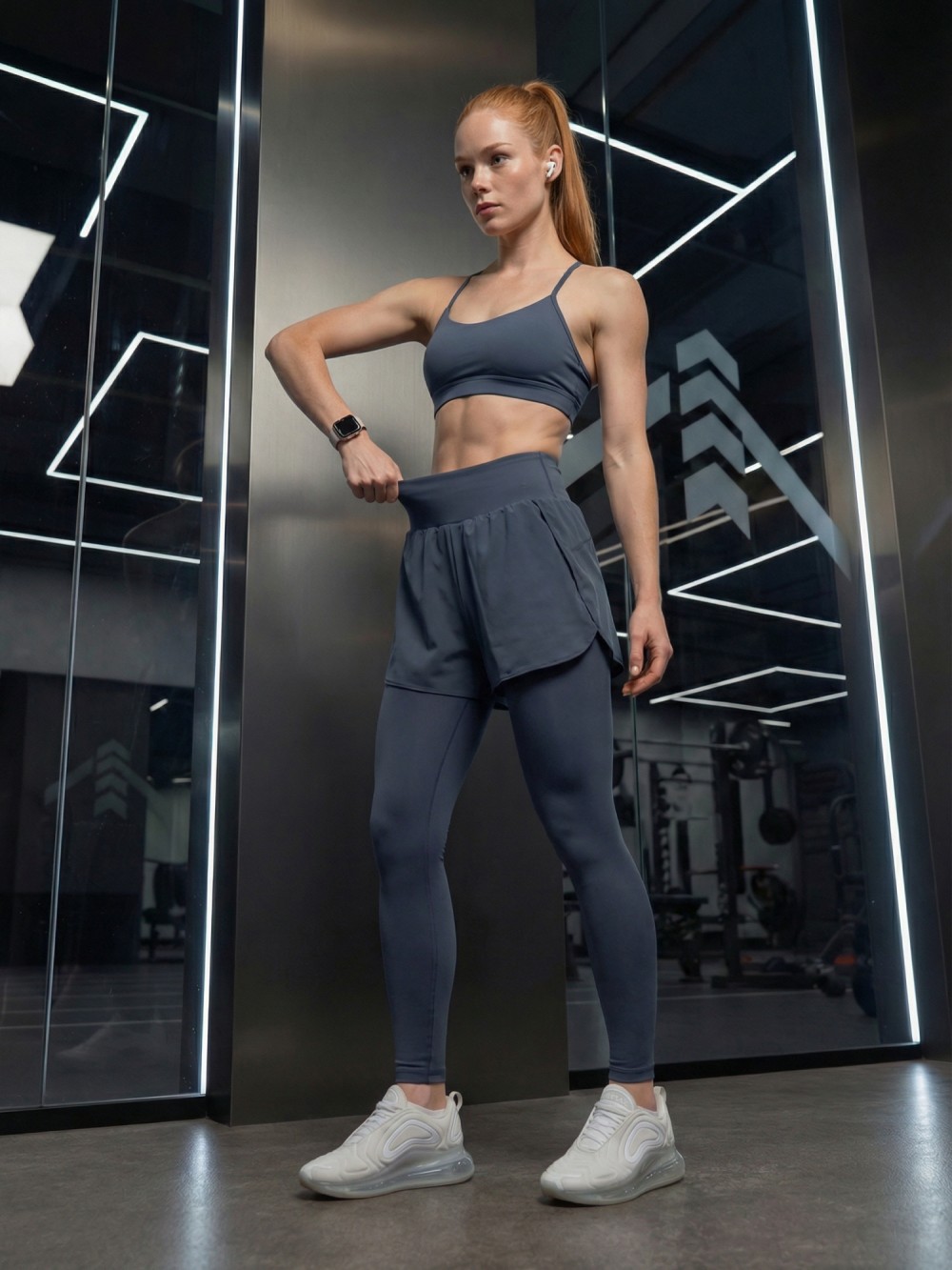 Высокая посадка фиксирует талию, ткань не просвечивает и сохраняет форму даже при интенсивных нагрузках. Модель подходит для фитнеса, бега, зала, функциональных тренировок и повседневного ношения.