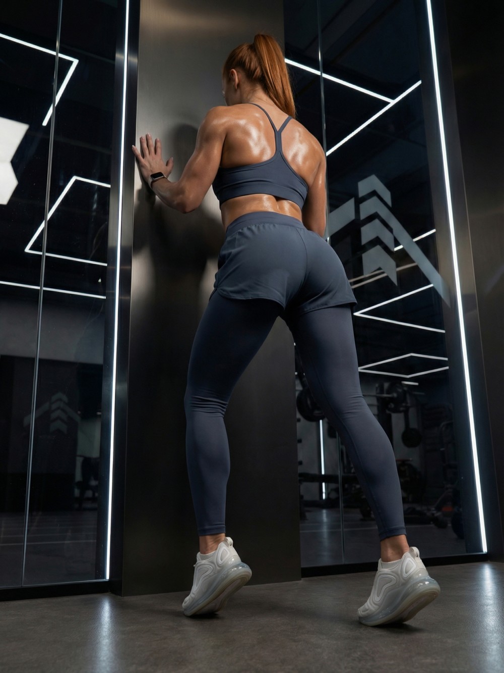 Эластичные легинсы плотно облегают фигуру и обеспечивают поддержку во время тренировок. Верхний слой в виде лёгких шорт добавляет комфорт, уверенность и современный спортивный стиль.