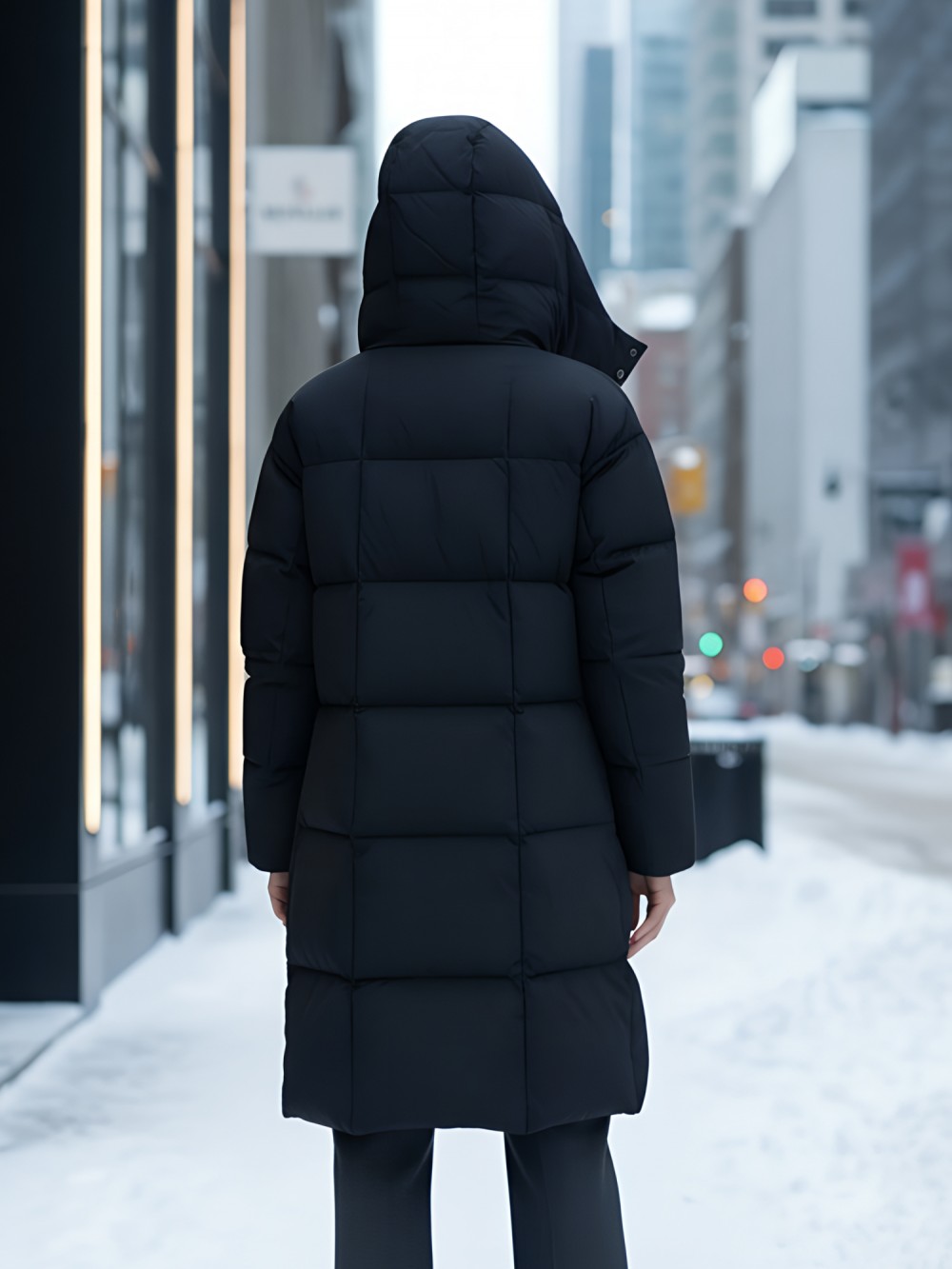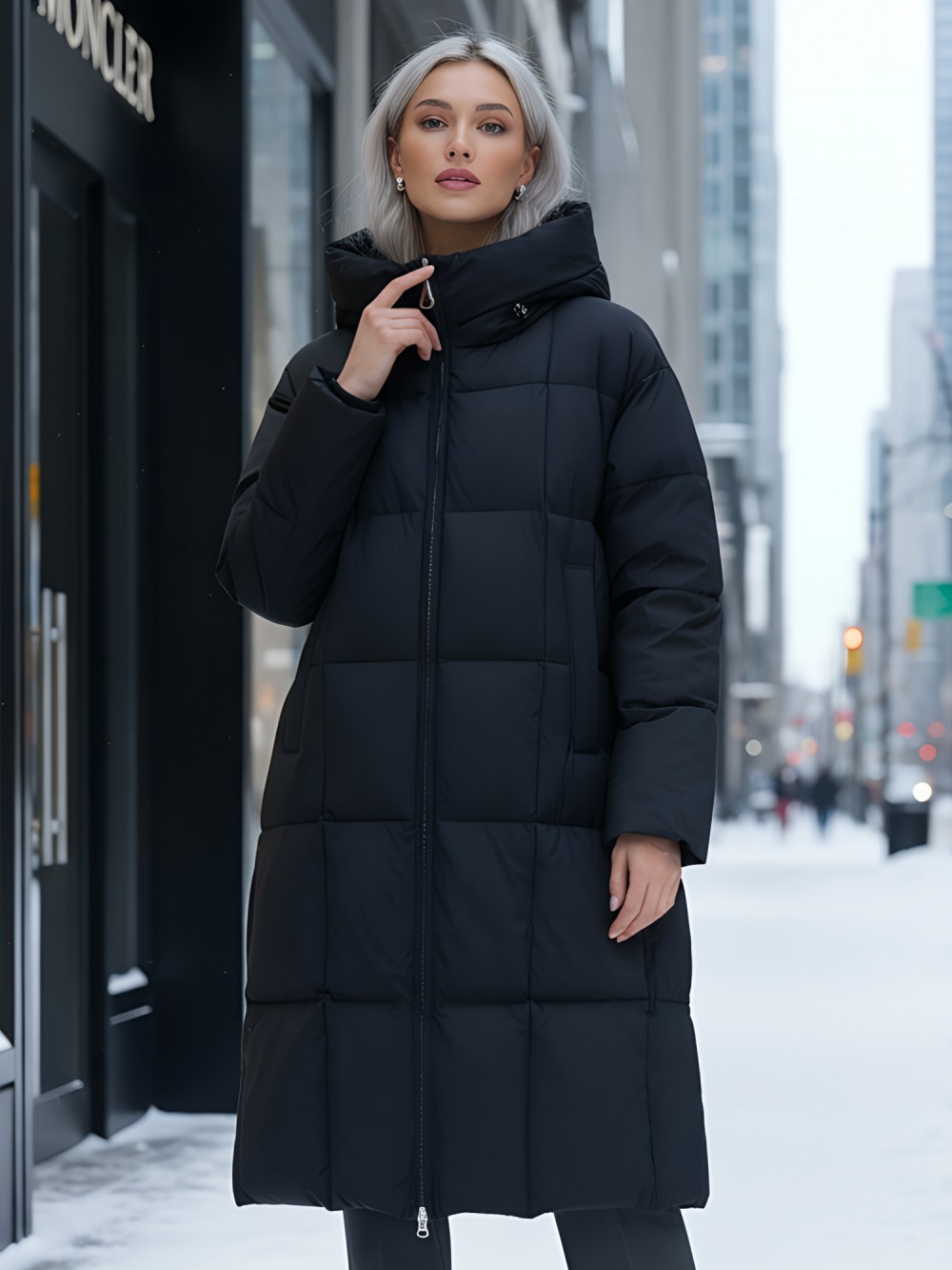 Элегантный и свободный покрой ниже колена создает стильный силуэт, а удлиненная длина и прямой фасон добавляют нотку изысканности. Капюшон с фиксатором и манжеты обеспечивают дополнительную защиту от холода и ветра, а удобные внутренние карманы с магнитными застежками станут идеальным местом для хранения мелочей.