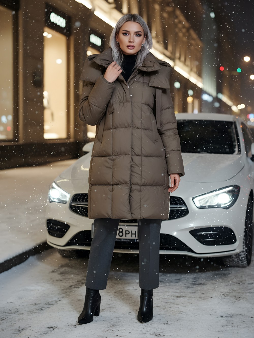 Надёжно защищает от холода, ветра и осадков. Идеален для зимней погоды, не требует головного убора.