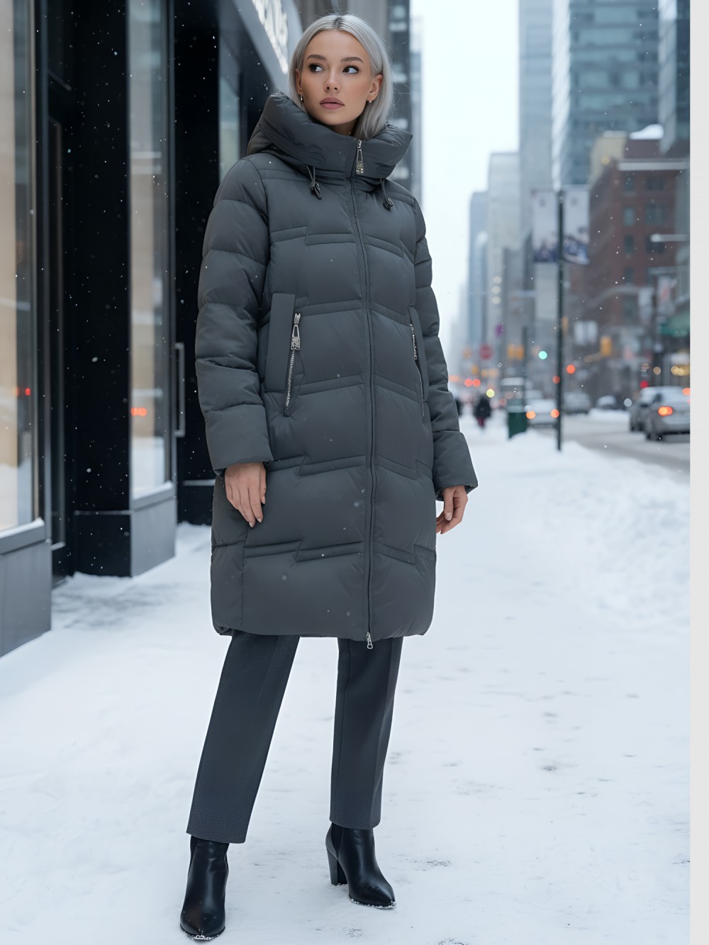 Зимнее утепленное пальто с капюшоном для женщин: Ваш идеальный спутник в холодные дни! Погрузитесь в мир стиля и комфорта с нашим зимним утепленным пальто, созданным для женщин, которые ценят элегантность и функциональность. Это пальто станет вашим незаменимым помощником в борьбе с холодом, придавая вам уверенность и тепло в самые суровые зимние дни. Главные преимущества: Уникальный теплоизоляционный материал: Синтепон плотностью 220 г/кв.м обеспечивает отличную теплоизоляцию при температуре от 0° до -25°C, позволяя вам наслаждаться зимними прогулками без страха замерзнуть. Водонепроницаемость: Мембранные материалы с водонепроницаемостью 7000 мм защитят вас от дождя и снега, гарантируя, что даже в непогоду вы будете выглядеть безупречно. Элегантный дизайн: Удлиненный покрой до колена и прямой/свободный силуэт подчеркивают вашу фигуру, придавая вам стильный и современный вид. Доступные размеры от 48 до 56 и рост от 165 до 195 см позволяют выбрать идеальную посадку для любой фигуры. Практичные детали: Не съемный капюшон, внутренние карманы для хранения необходимых мелочей, а также удобная двойная молния делают это пальто не только стильным, но и функциональным. Комфорт на высшем уровне: Быстросохнущий, ветрозащитный и водоотталкивающий материал обеспечивает максимальный комфорт в любых условиях. Гипоаллергенные и дышащие ткани гарантируют, что вы будете чувствовать себя комфортно в течение всего дня. Стиль и универсальность: Это пальто идеально подходит как для офисных будней, так и для повседневных прогулок. Его можно сочетать с различными нарядами, будь то классический или спортивный стиль. Доступные цвета: коричневый, черный, светло-коричневый и темно-серый — вы точно найдете свой идеальный вариант. Не упустите шанс стать обладательницей этого великолепного пальто! Покупая его, вы инвестируете в качество, стиль и комфорт. Закажите сегодня и наслаждайтесь каждым моментом зимы, оставаясь стильной и защищенной от холода!