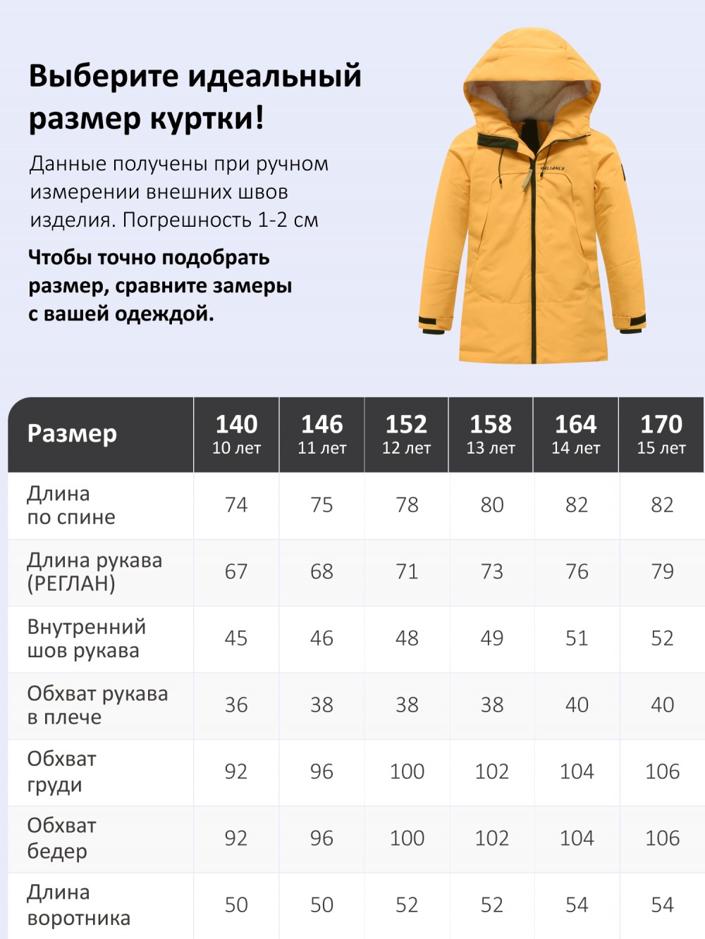 • A Длина курткиИзмеряется от верхней точки плеча до нижнего края куртки.