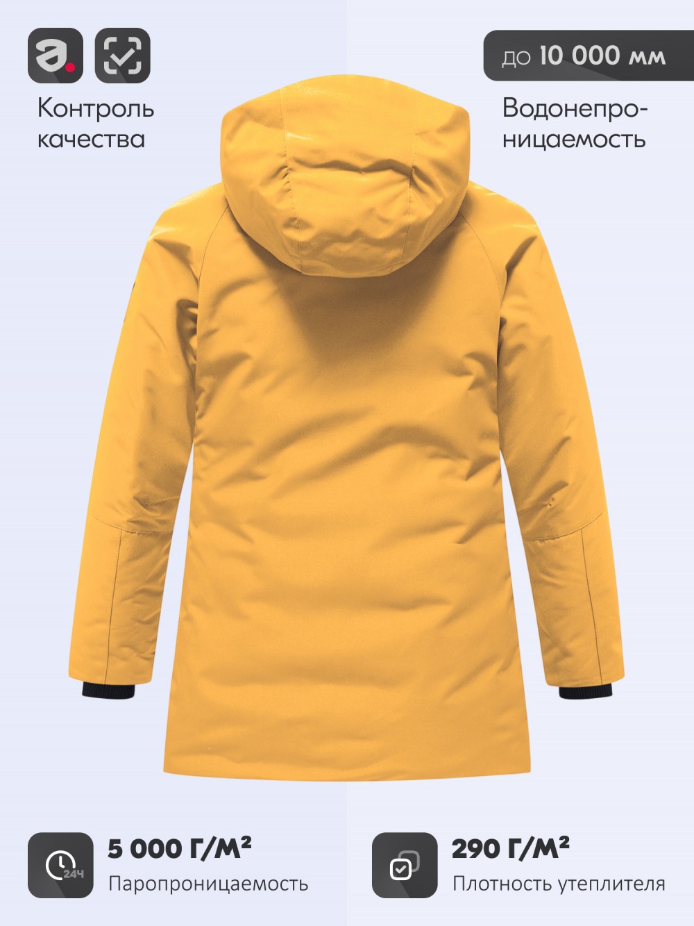 фиксаторы на рукавах (пат с липучкой) и трикотажные манжеты удерживают тепло внутри.